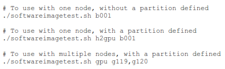 In order to execute the SIT script, user must provide a valid set of input arguments. The possible input arguments are; Partition: The SIT script runs as a batch job, therefore the user needs define the partition in which the node or the set of nodes are located. If the nodes that we wish to test are spread across multiple partitions, need to enter the partitions as a comma separated list. Node(s): The user can input as many nodes as they wish.