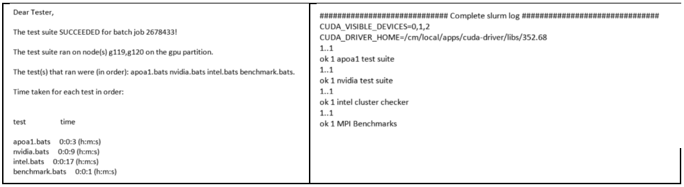 Further to these tests, we have developed scripts a few more essential tests, e.g., checking the storage mounts, SLURM partitions, ssh host-keys, etc.